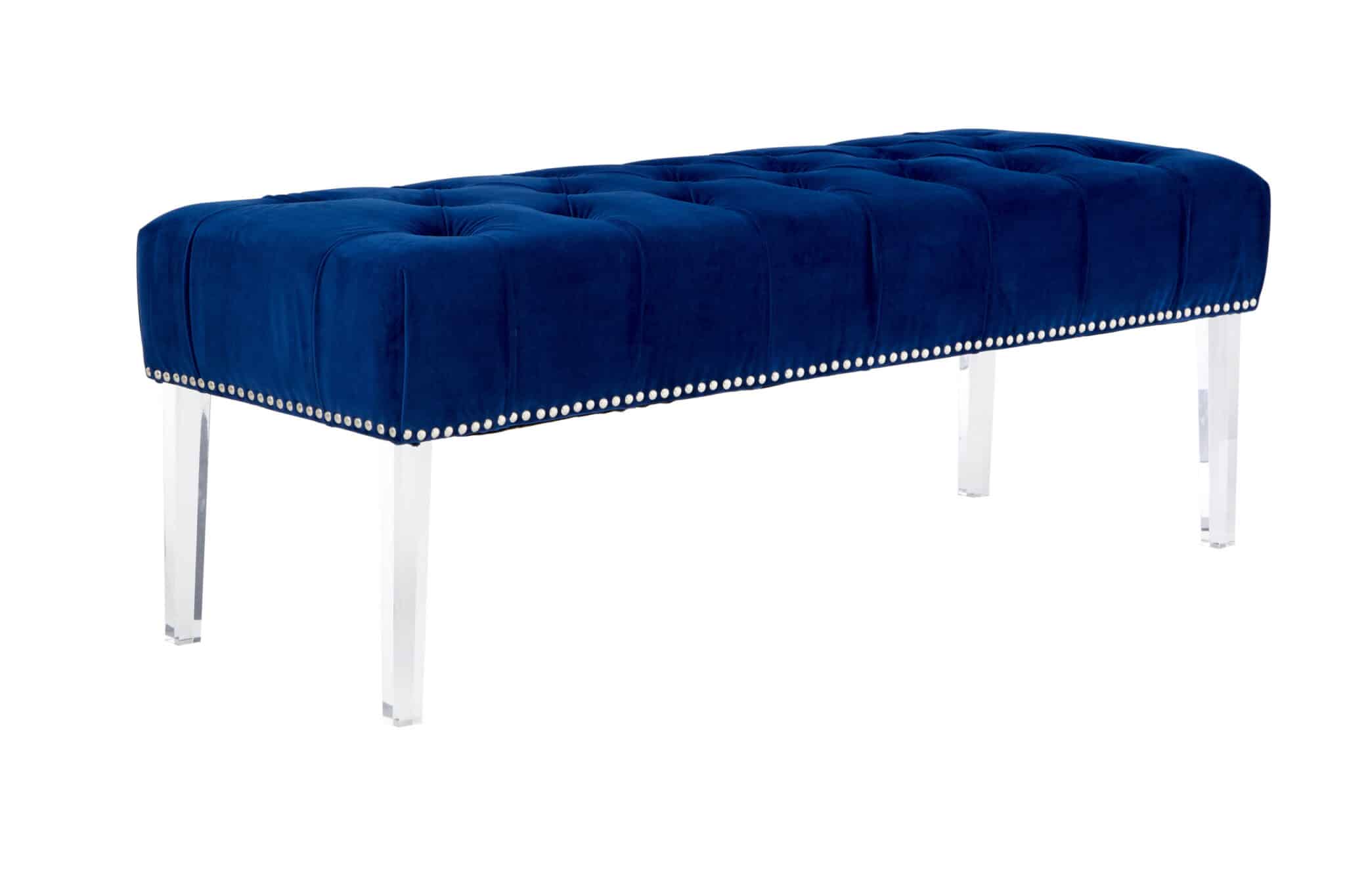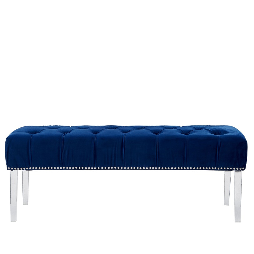 Indulge in the dreamy comfort of the Azure Acrylic Dream bench. Upholstered in rich blue velvet, this modern piece offers a soft and elegant seating experience. Its sleek, clear acrylic legs provide a contemporary touch, making this bench a comfortable and stylish addition to your home.