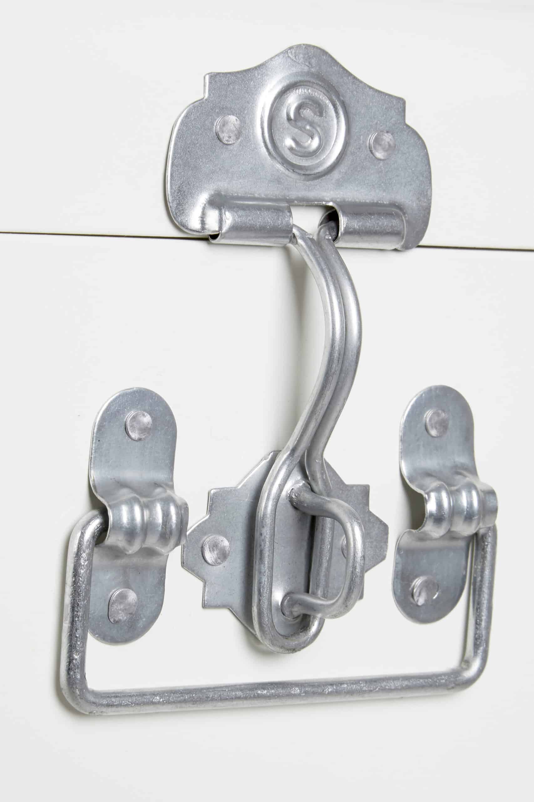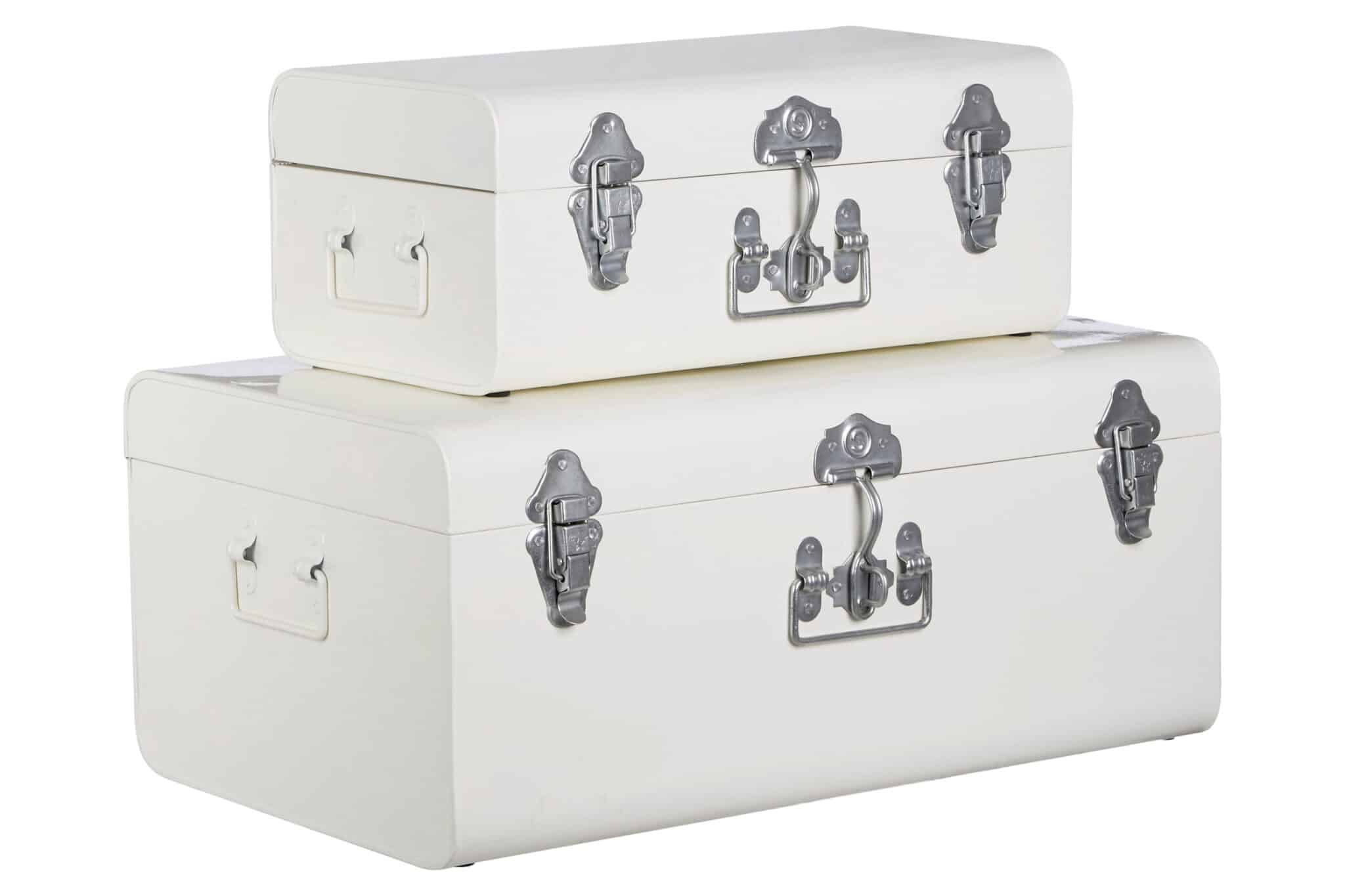 The Ferro Ivory Storage Pods present a durable and understated modern storage solution. Crafted from robust galvanized tin with iron elements and accented with decorative chrome, this set of two trunks offers secure and practical storage. While designed for functionality, their clean lines and solid construction provide a sense of comfortable reliability.