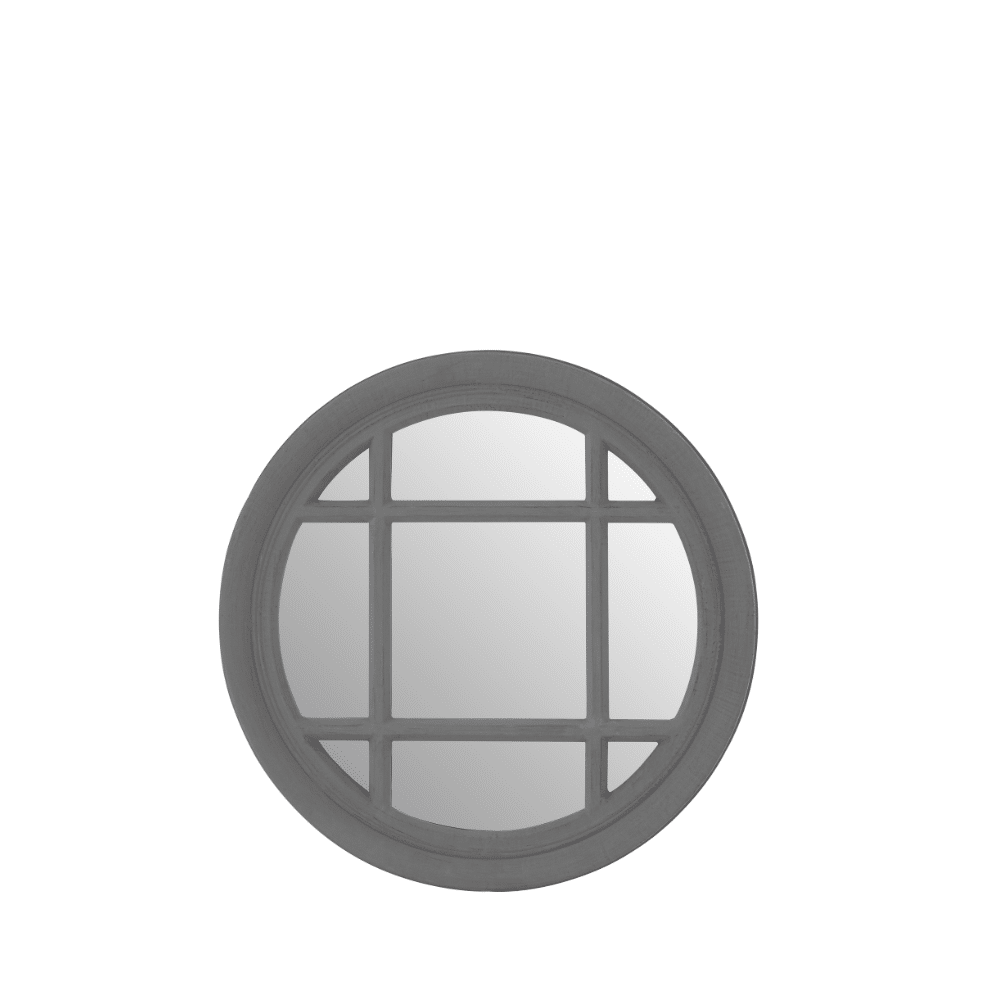 Style your space with this Grey Porthole Mirror, featuring a flat grey wood frame and a distinctive porthole-inspired design, perfect for coastal or nautical themes.