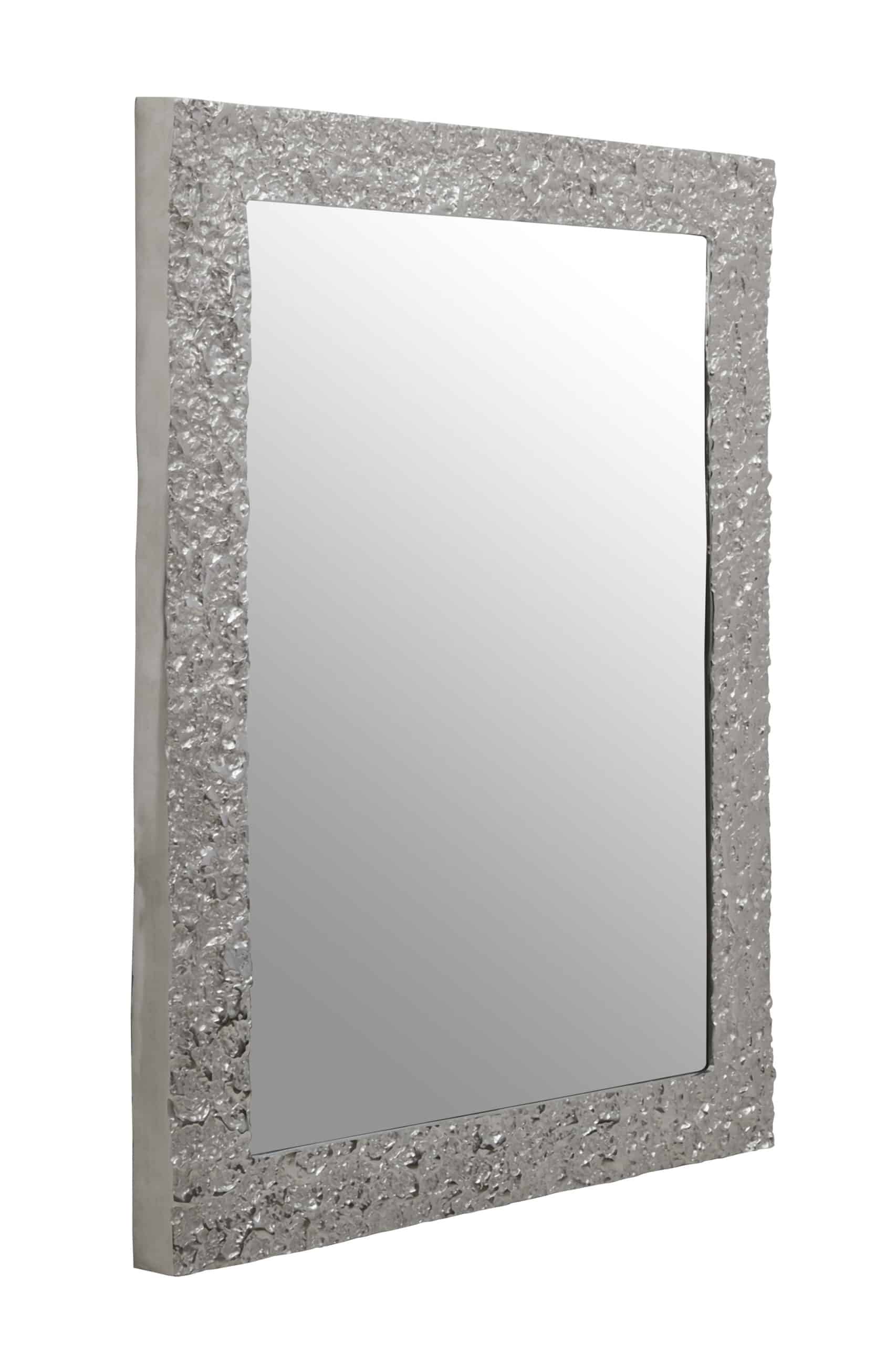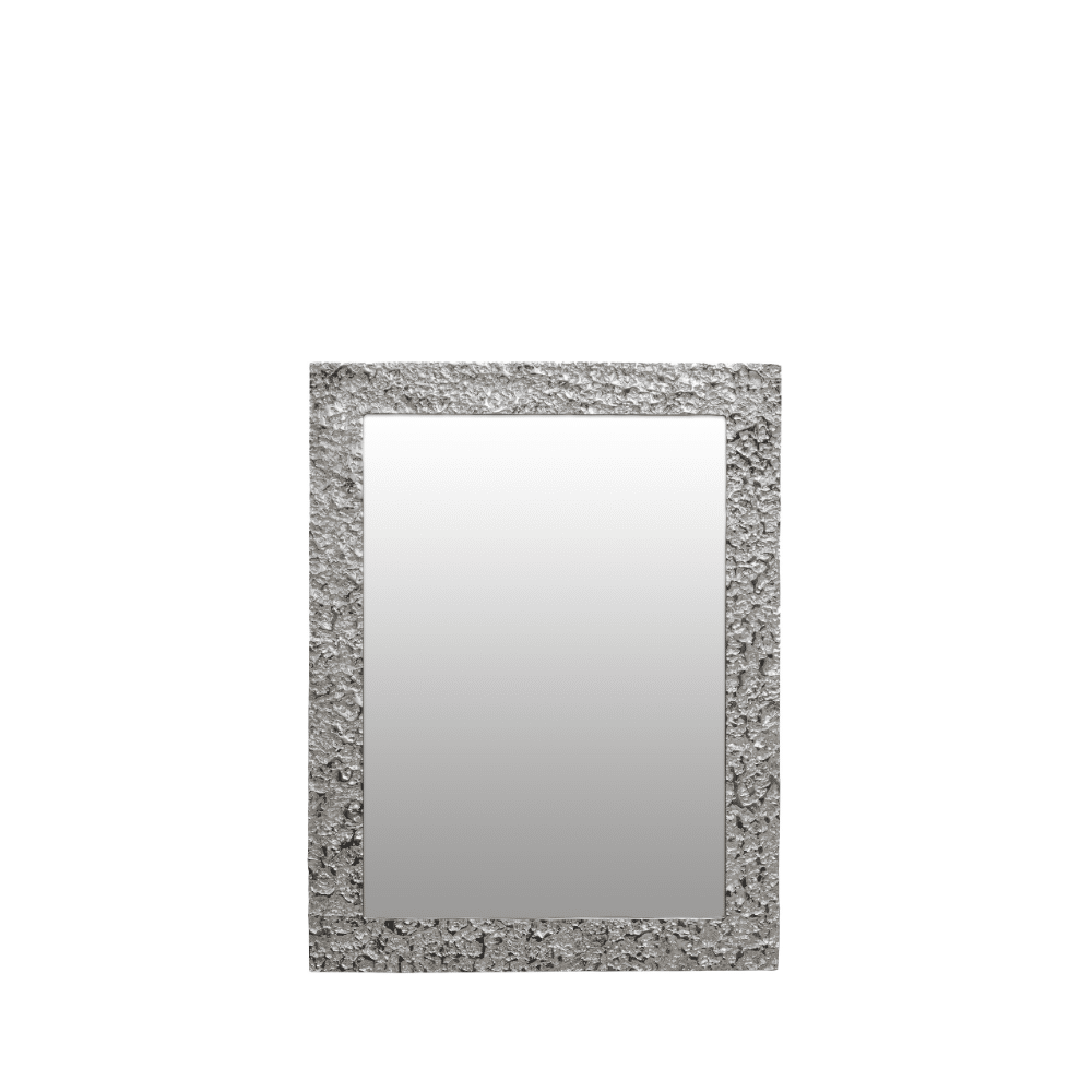 The Metallic Silver Border Mirror features a bold silver metal frame, combining function with chic, modern style.