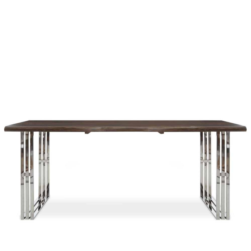Introducing the NaturaLoop Dining table, a modern centerpiece that celebrates the interplay of wood and metal. The smooth, natural wooden top offers a comfortable and spacious dining surface. The graceful loop base, crafted from gleaming stainless steel, not only provides sturdy support but also maximizes legroom, ensuring a comfortable and stylish dining experience.