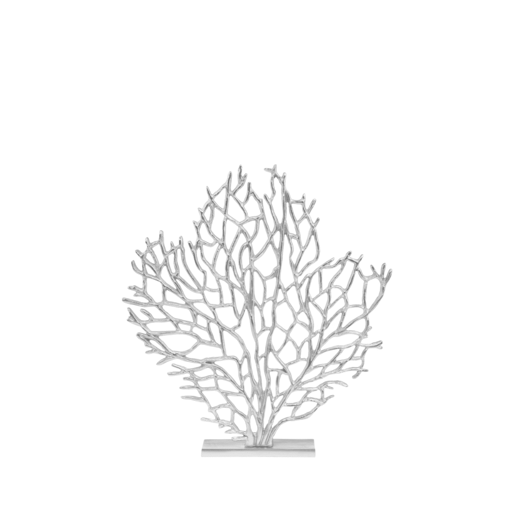 The Decorative Silver Coral Art Piece, finished in a lustrous silver nickel, captures the intricate beauty of natural coral. This large statement piece brings a touch of oceanic elegance and a luxe element to any home, its silvery branches creating a captivating visual texture.