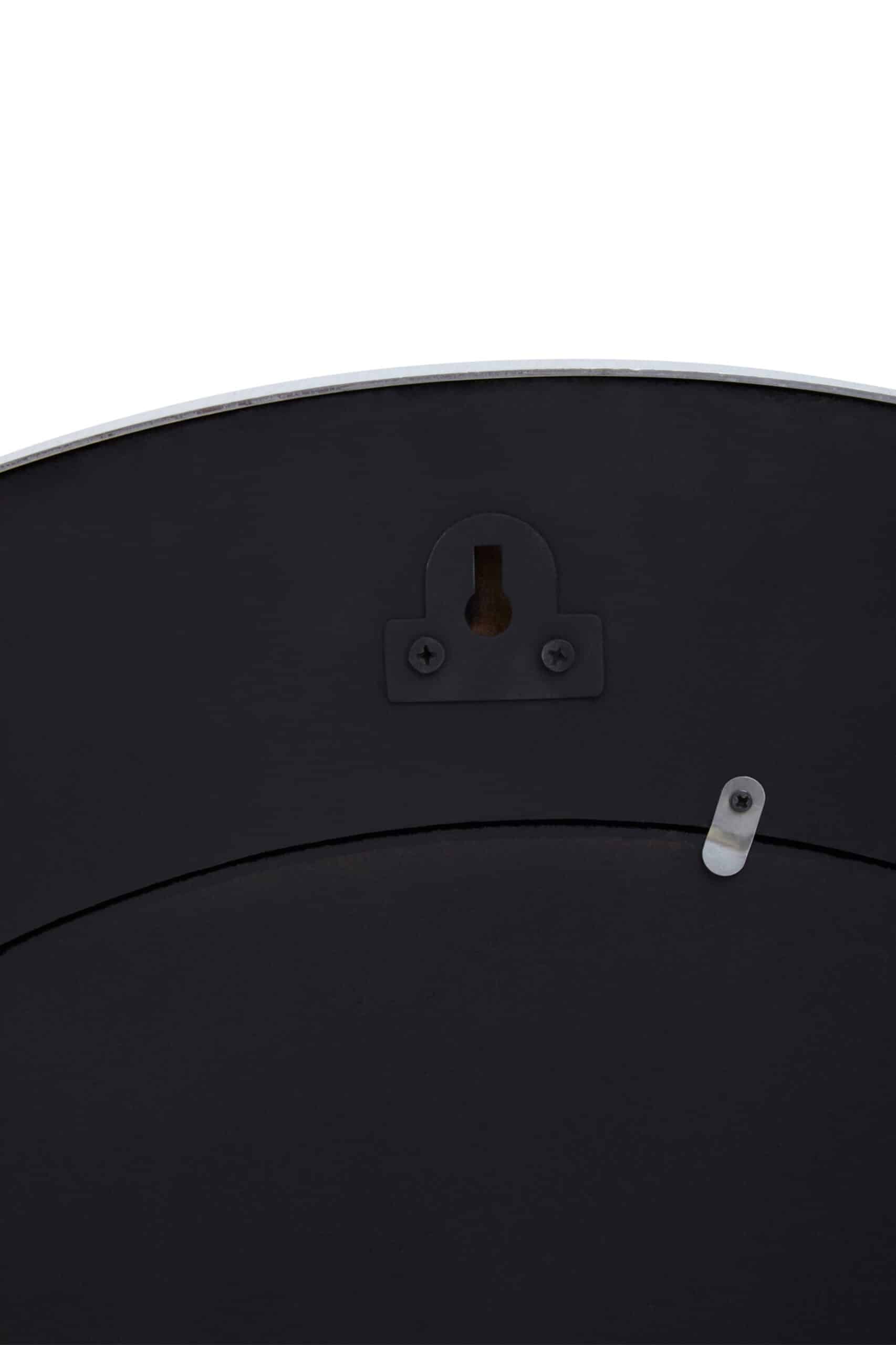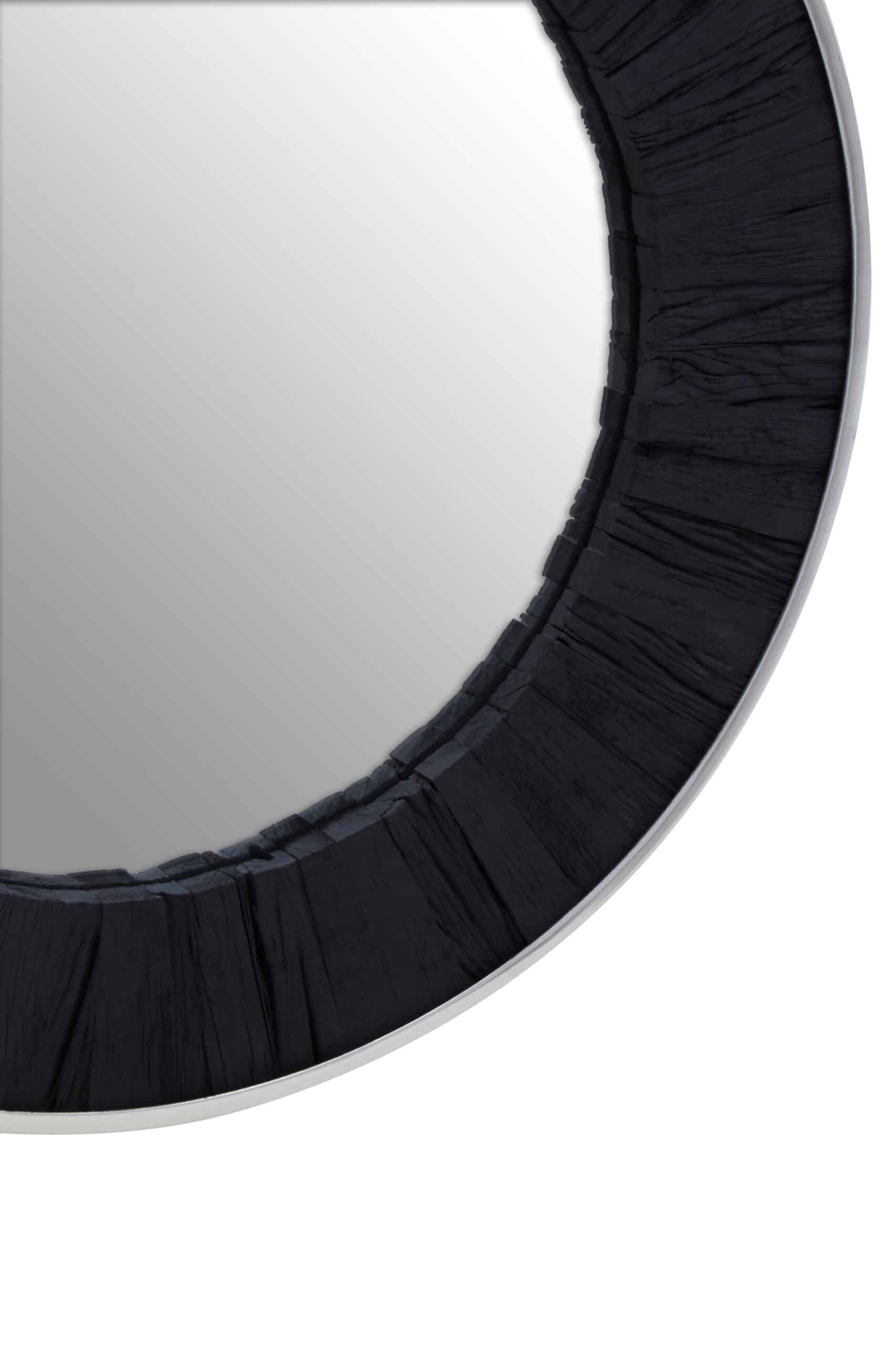 Add a touch of contemporary elegance with this round mirror. Its black wood frame and subtle silver inner lining provide a sophisticated and clean look.