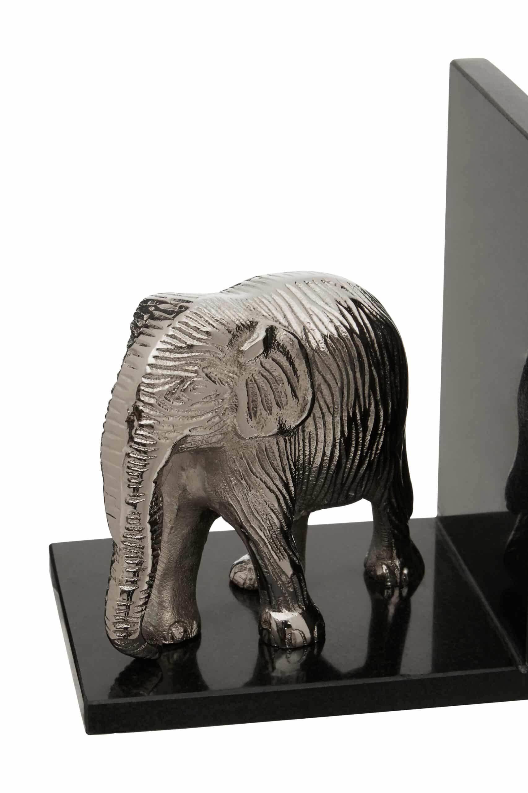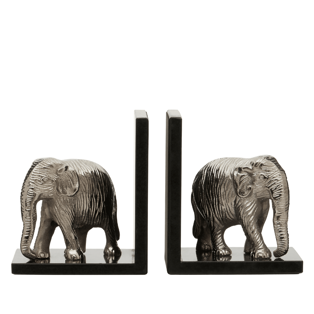 Organize your books in style with this set of two striking elephant bookends, their silver finish beautifully contrasting with the solid black marble bases.