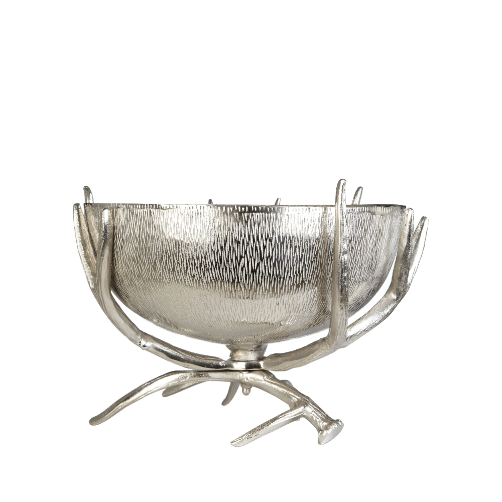 The Silvered Branches Highlands Bowl is more than just an eye-catching centerpiece; it’s a sculptural tribute to majestic wildlife. Its intricate design features stylized antlers crafted in a gleaming nickel finish, cradling a textured bowl. This piece brings a touch of sophisticated wilderness to your table or shelf, adding character and a striking accent that subtly echoes the natural beauty of diverse landscapes.