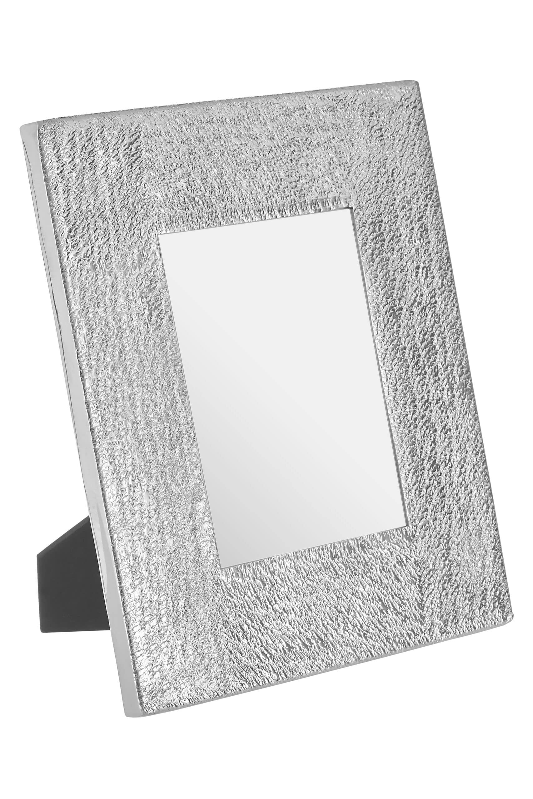 Highlight your memories with this stylish photo frame. Its durable aluminum construction features a beautifully hammered silver surface for a unique tactile appeal.