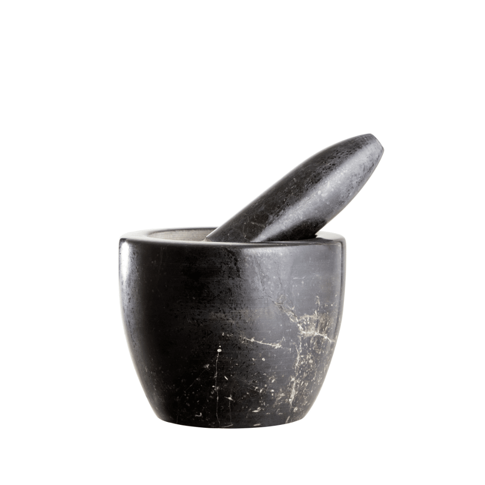 A must-have for the contemporary kitchen, the ‘Slate & Stone Mortar’ combines exceptional durability with a chic design. Carved from 100% black marble, this set is designed with a practical tapered shape for effortless grinding of herbs, spices, and more. Its solid construction ensures it will be a reliable partner in your culinary adventures for years to come. With its sleek black finish and natural stone appeal, the ‘Slate & Stone Mortar’ is a sophisticated and indispensable tool for any discerning home chef.