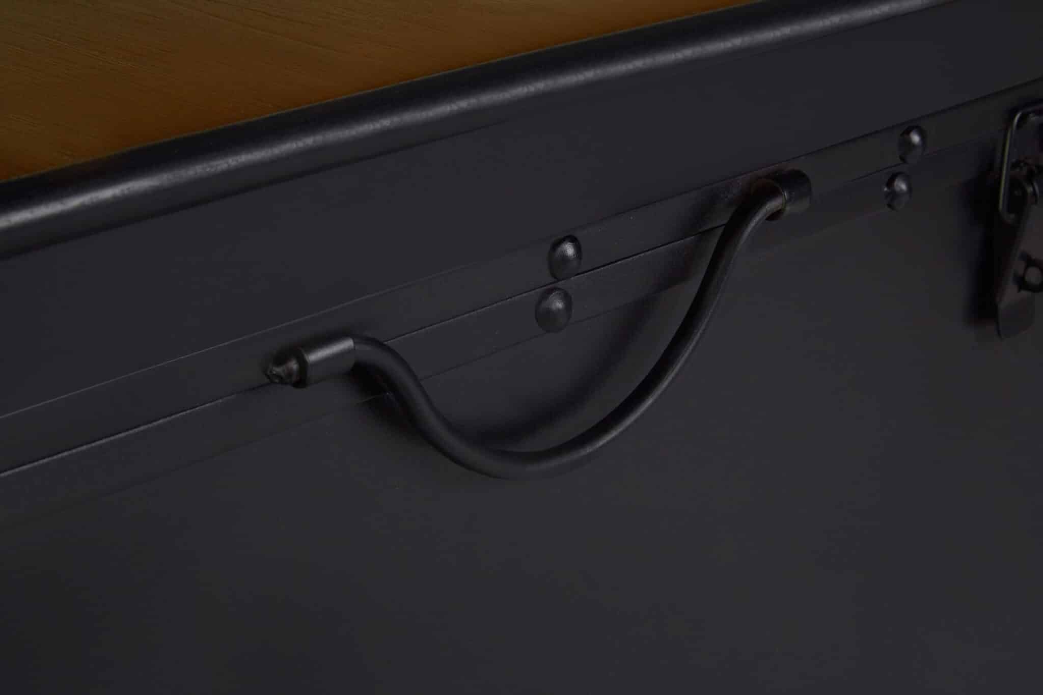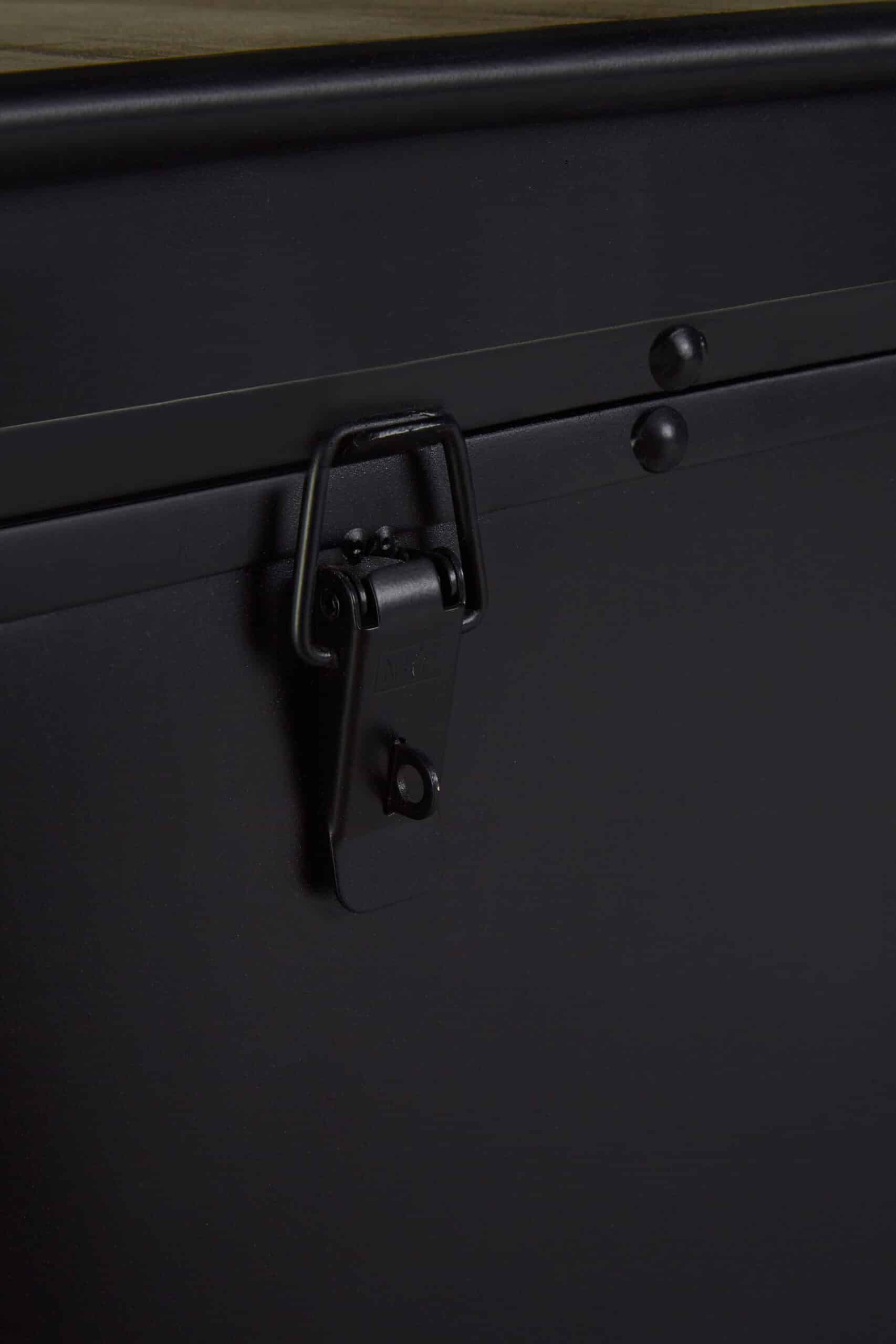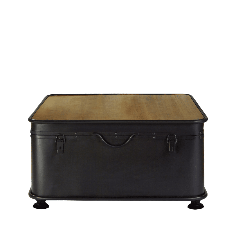 The Ironbound Storage Table offers a modern industrial aesthetic with practical storage. Its sturdy iron frame (60%) supports a rich fir wood top (40%) with a hinged lid. This table is a stylish and functional centerpiece for any living area.