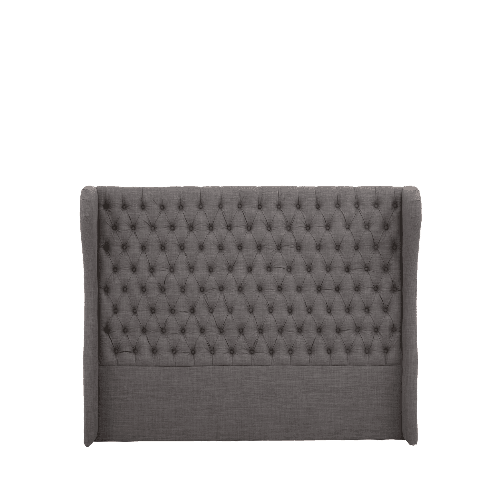 The Winged Haven Headboard offers luxurious comfort for your super kingsize bed. Upholstered in soft grey fabric with deep button tufting and a graceful wingback design, its sturdy oak frame adds both style and support to your bedroom.