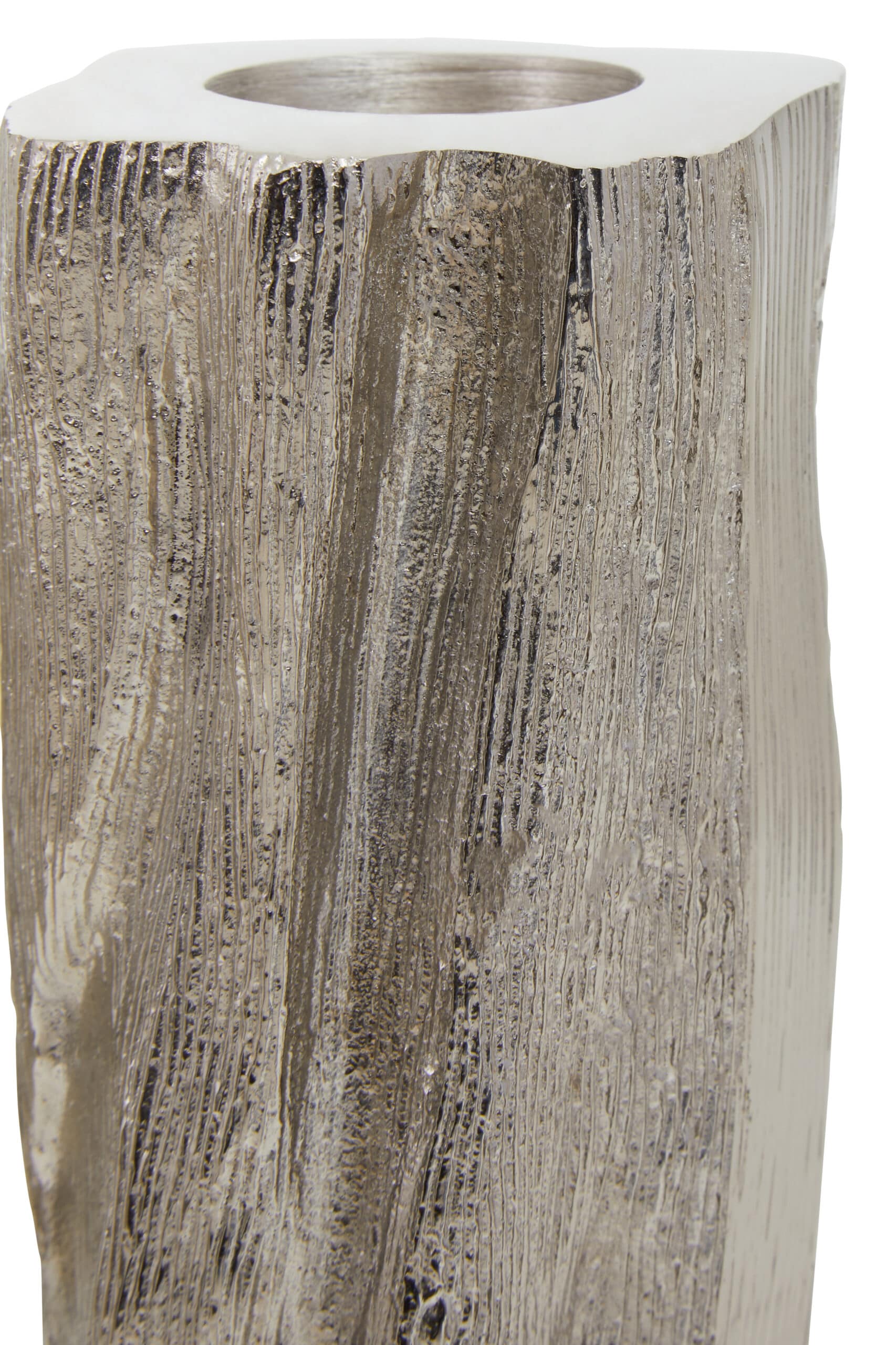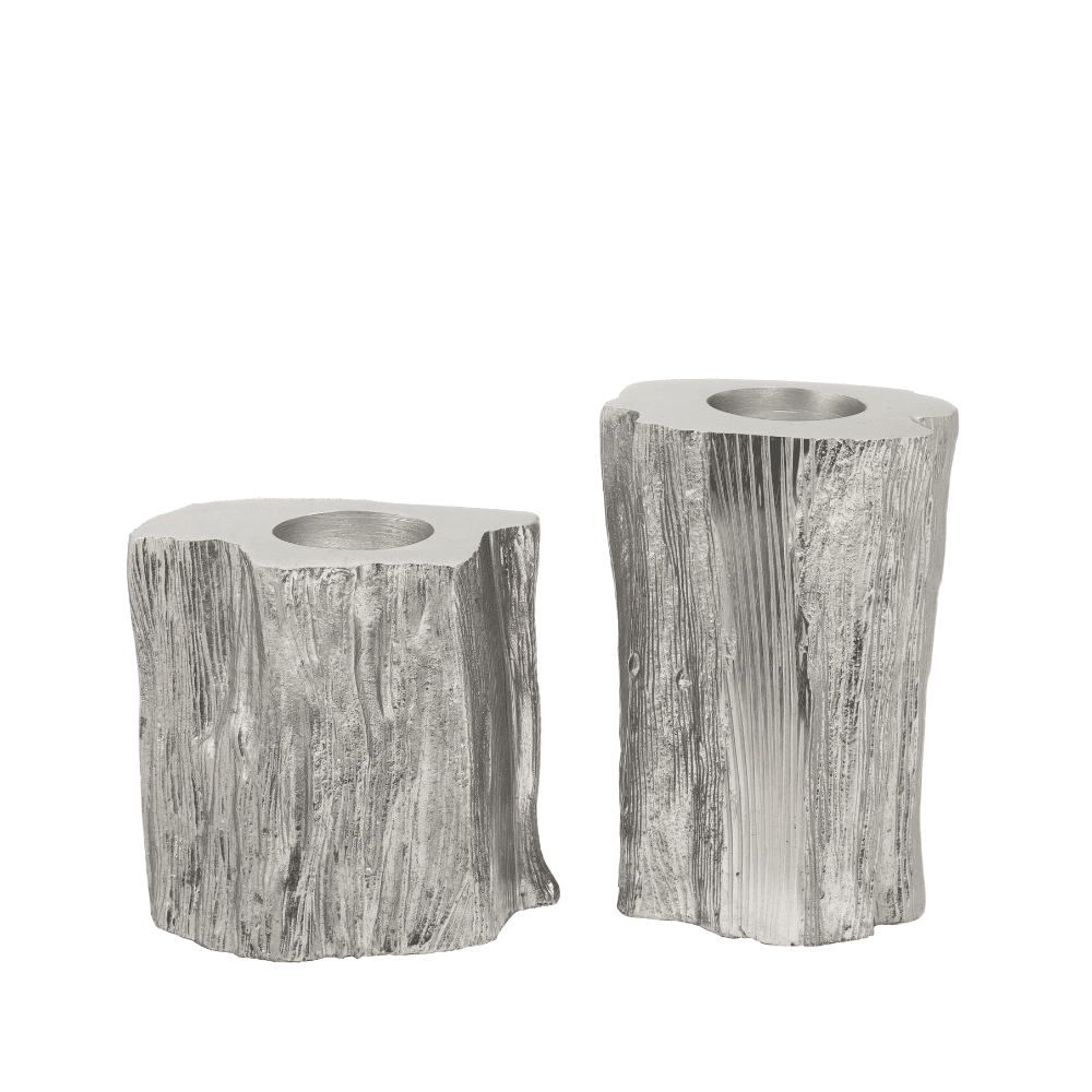 Enhance your space with the warm glow of tealights nestled in these distinctive silver holders. Their realistic log shape brings an organic feel to any setting.